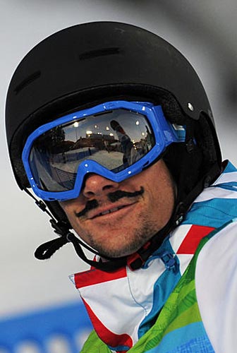 THE SCRAP MEDAL for Our Favorite Athlete goes to snowboarder Mathieu Crepel from France for competing while wearing this hilarious fake mustache. We didn't see him compete, we don't know how he fared. Hell, we don't know ANYTHING else about him, but why would we need to?