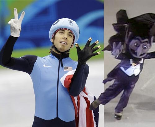 Apolo Anton Ohno), who incessantly finger-flashes his medal tally each