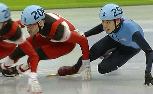 THE SCRAP MEDAL for Ohno You Di'n't goes to Apolo Anton Ohno who was disqualified after he shoved aside Francois-Louis Tremblay in the 500 meter short track speedskate final, perhaps misunderstanding what "making a final push for the finish" is supposed to mean.