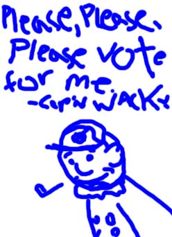 After spending most of his campaign contributions on rum for a possible victory party, Cap'n Wacky had to make some signs himself.