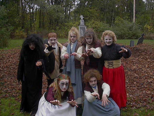 (Above) The yound witch, Hettie, summons zombies from their graves. (Below) The undead zombies, hungry for brains.