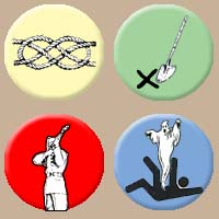 The badges for knot-tying, treasure-hunting, sharp-shooting, and exorcism