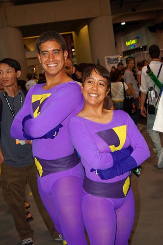 On the other hand, they're dressed as the goddamn Wonder Twins, so they're also 100% unfortunate. "Form of a loser!" "Shape of a jerkwad!"